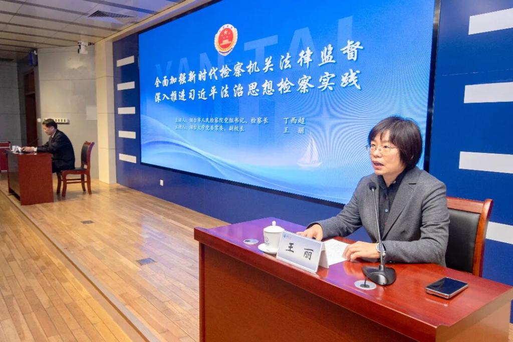 党委常委、副校长王丽主持。此次授课是检校合作协议签署后的重要实践举措,旨在以检察实务赋能法学教育,助力高素质法治人才培养。烟台市人民检察院副检察长于泳,党组成员、政治部主任刁清华,相关部门负责人员,学院党政领导班子,师生代表共同参与听课。